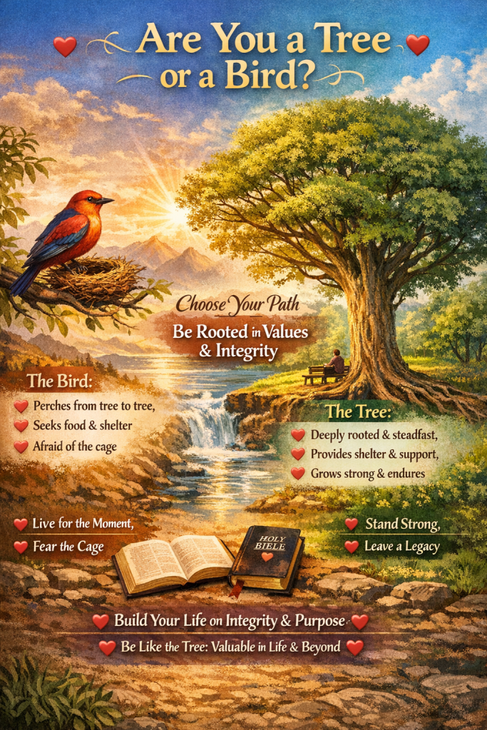 Today, it is your decision to either be like a tree or a bird. Remember, whichever one you choose has its place. But I will advise you to be like a tree—being useful to others while you are alive and even more useful when you finally join your ancestors. ❤️